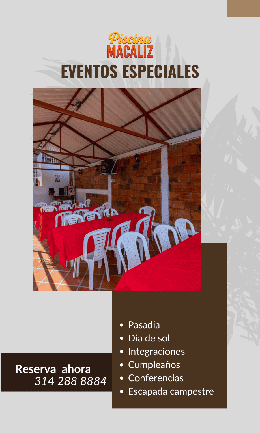 ideal para compartir con familia, pareja, amigos o tu empresa. En Hotel Piscina Macaliz cada visita se convierte en un recuerdo único.